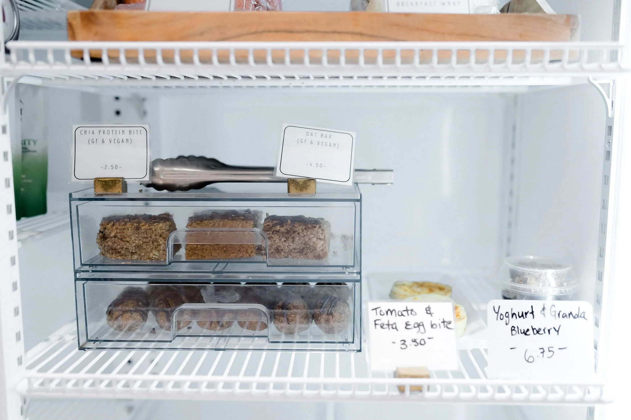Curated food menu: Our mouthwatering, daily fresh-baked, in-house goods are grab-and-go style, meaning they are ready when you are and perfectly paired with one of our many beverage options. Some of your favourite food items will be seen on repeat, while some scrumptious and surprising variety will be introduced daily- scroll down to get a visual of some of the delicious breakfasts, lunches and snacks we provide for you.